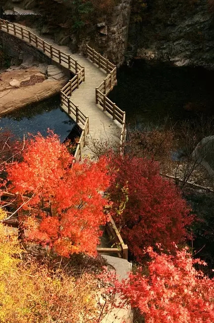秋日再美美不过一潭秋水,秋天的北九水潭水清澈如明镜,溪水潺潺,水瀑如云端,再加上崂山红叶特有的韵味,真是大美北九水。