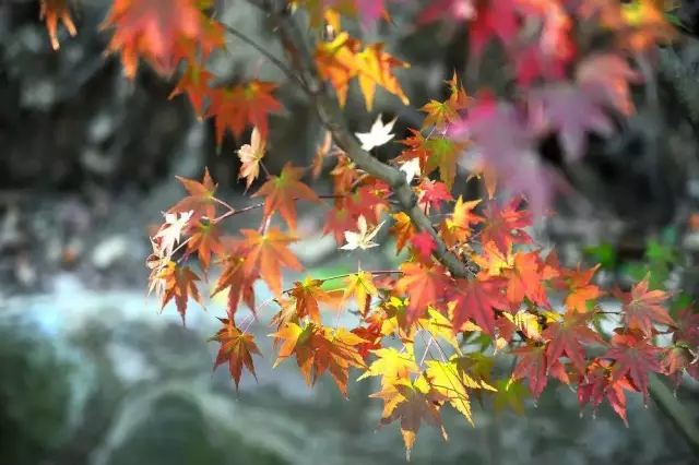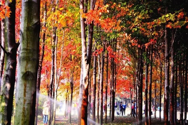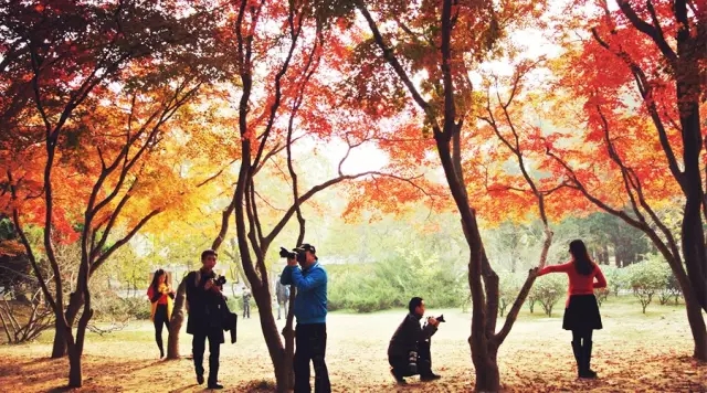 虽然没有春季那种万紫千红、繁花似锦的艳丽景色,但是枫叶透红,银杏泛黄,其他不少树木叶子变色,颇有“万山红遍,层林尽染”的意境。