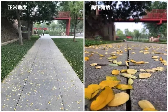 当我们想要展现远处树木的高大时,我们以采取较低的机位进行拍摄。这样拍摄的前提是,镜头近处的地面漂亮而有内容,或者有明显的视觉引导,例如小路。