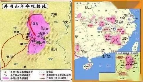 为什么是井冈山?从地理位置来看,这里远离中心城市和交通要道,敌人统治力量比较薄弱,同时地势险要,幅员广阔,有游击战争的回旋余地;从基础条件来看,大革命时期这里建立过党的组织、工会、农会和农民武装,还保存着袁文才、王佐两支农民自卫军,革命基础较好,又有自给自足的地方农业经济,具有为红军初期发展提供给养的经济能力。