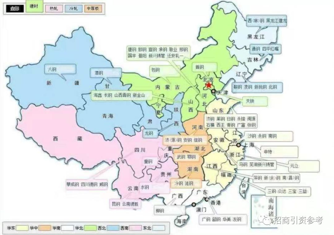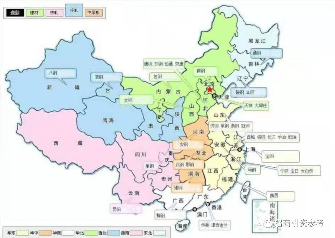 中国最全钢铁厂分布地图:最新各钢铁厂产能及分布图!