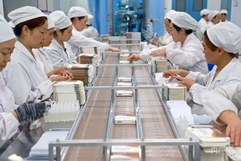 工人对针剂等产品进行包装检查(央广网记者 侯凯奇 摄)