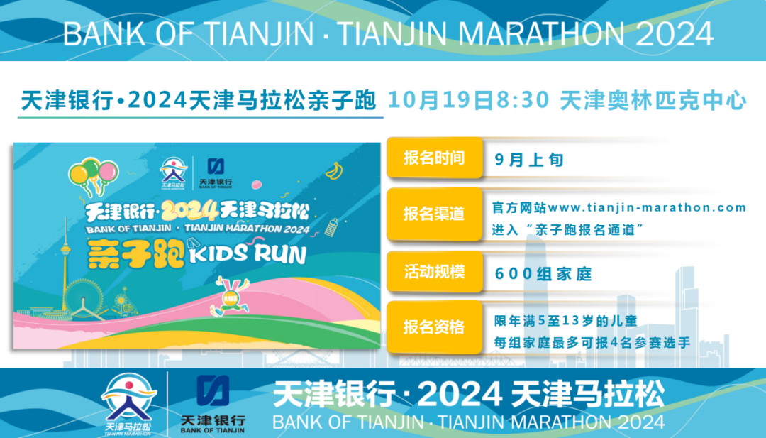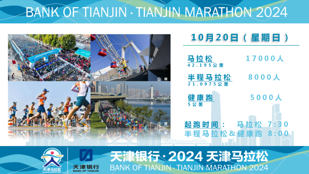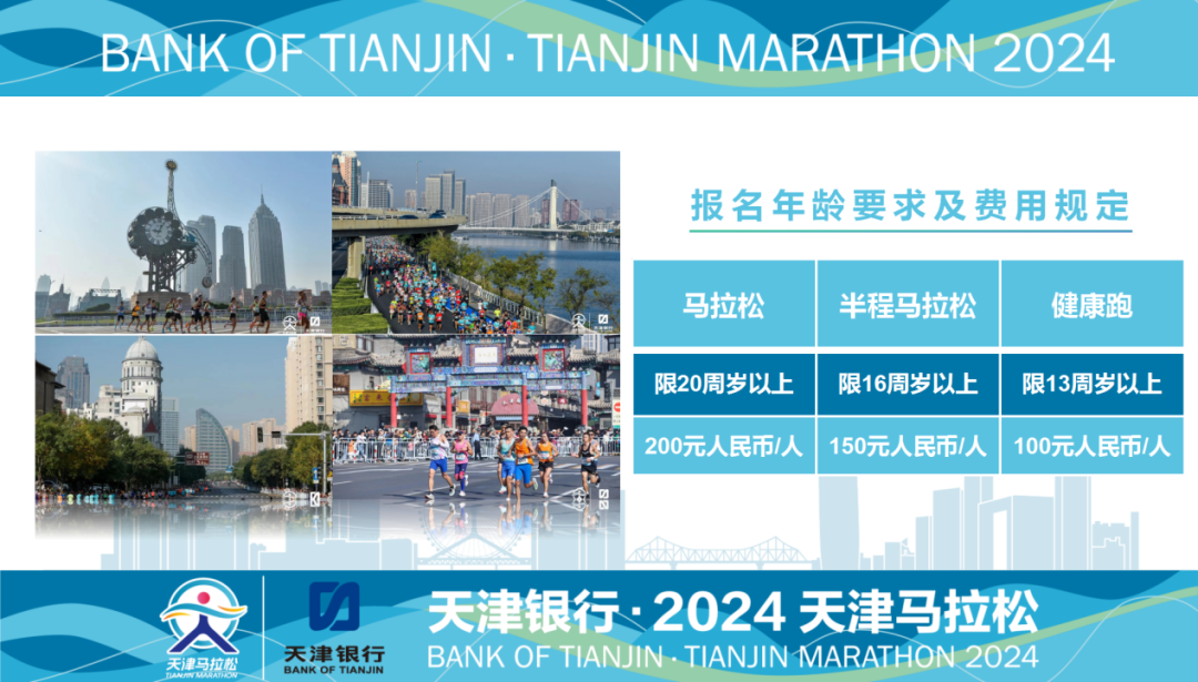天津银行·2024天津马拉松由天津市人民政府主办,中国田径协会认证,天津市体育局、天津市文化和旅游局、和平区人民政府、河西区人民政府、南开区人民政府、河东区人民政府、河北区人民政府、红桥区人民政府、东丽区人民政府共同承办,中奥路跑(北京)体育管理有限公司独家运营。