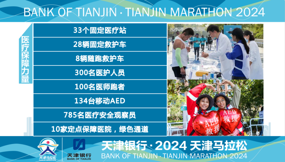 组委会始终将选手身体健康和生命安全放在首位,本届赛事共设33个固定医疗站,28辆固定救护车组,8辆移动随跑救护车,300名医护人员、100名医师跑者,134台移动AED, 785名医疗安全观察员,10家定点保障医院,开辟绿色就诊通道,方便选手及时快速就医治疗。同时,330名裁判员和5500名志愿者将全力守护天马跑者,保障赛事顺利举行。