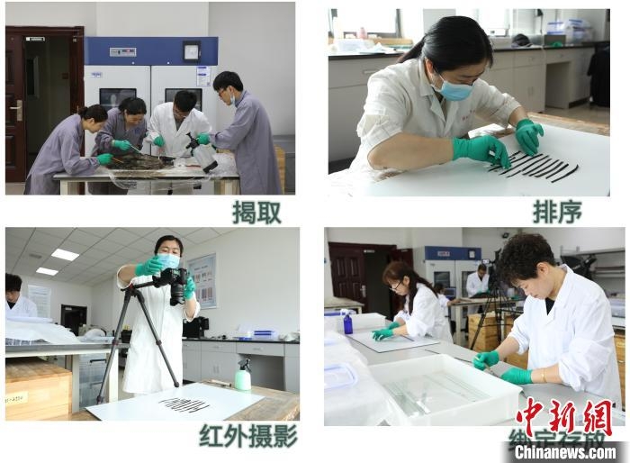 考古工作人员对出土战国楚简进行科学处理。国家文物局供图
