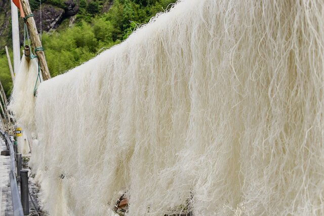 福州线面是福州市的一道传统小吃,属于闽菜系,起源于唐代,又称“汤饼线”和“怀饪”,它以“丝细如发、柔软而韧、入汤不糊”而闻名。福州线面以精面粉为原料,辅以精盐、茹粉、食油等手工拉制晾干后而成具有煮时不糊,柔韧滑润,咀不粘齿,牵丝缕缕等特点。煮食方便简单,将线面投入沸水锅中,待线面上浮后捞起,倒入炖好的羊肉、鸡肉、或猪上排汤中,调些福建老酒、葱花等,芬香味美。福州风俗,过生日要吃线面加上2个鸭蛋,称“太平面”,寓意平安长寿。 【 详细>>】
