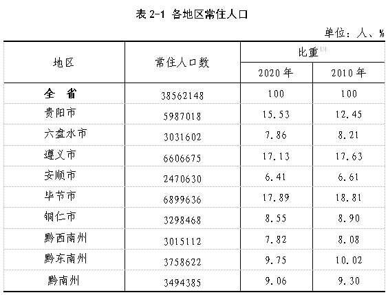 根据第七次全国人口普查结果,现将2020年11月1日零时全省9个市(州)常住人口[2]有关数据公布如下: