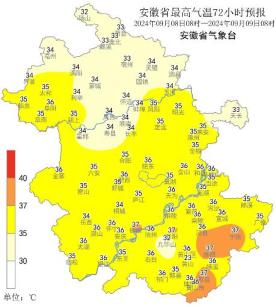 高温:10日前我省仍以高温天气为主,除6日至7日淮北地区和江淮之间北部最高气温低于35℃,其余大部分时段我省最高气温普遍35~37℃,江南部分地区可达38℃。11日高温天气略有缓解,仅沿淮和江淮之间北部局部最高气温35℃以上。12日后全省高温天气逐渐有所缓和,江南局部仍有35℃以上的高温天气。
