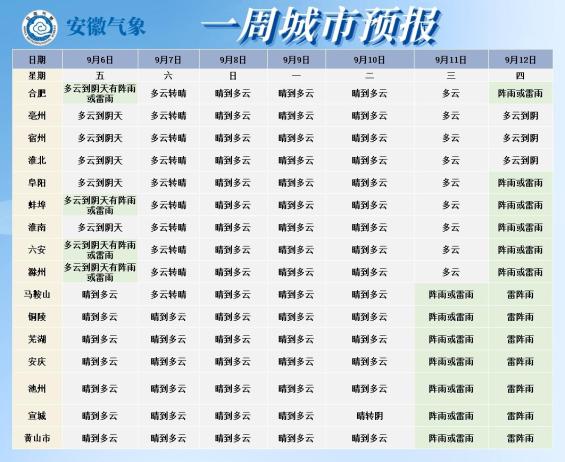 据安徽气象台预报