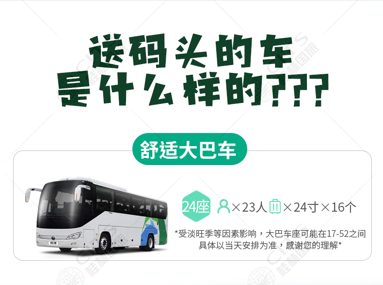 ①出游前一天21:00左右导游会短信/电话通知您上车时间、地点;
