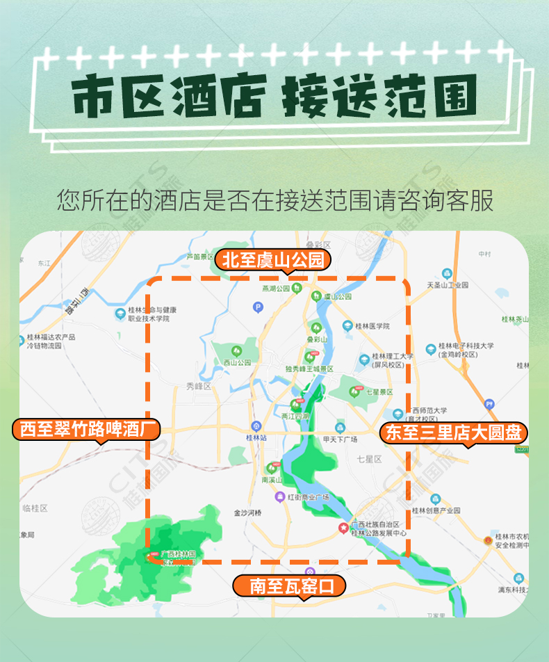 ②桂林市内酒店提供接送服务,如酒店门口不便停车,导游会安排您就近上车;