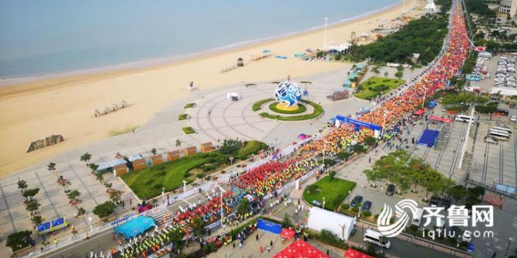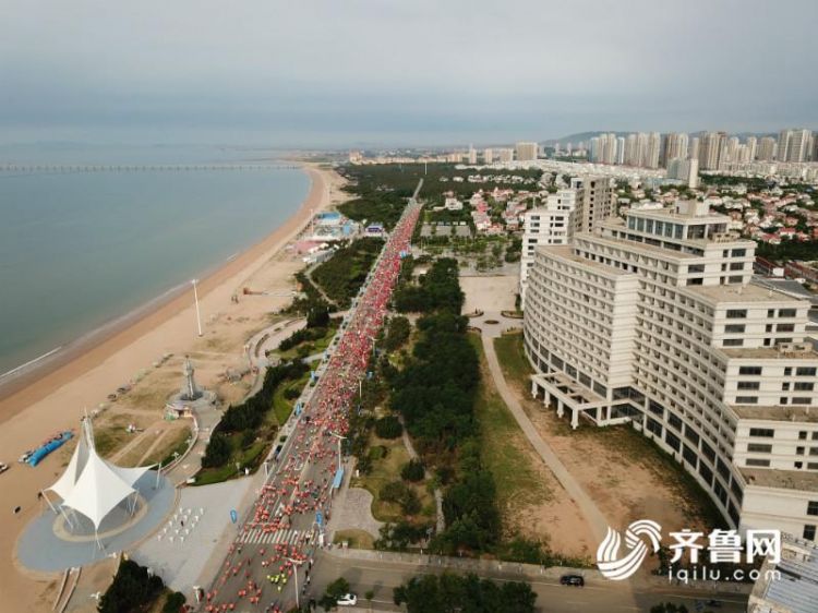 齐鲁网6月16日讯 2019卡尔美·仙境海岸海阳马拉松于6月16日上午7:00鸣枪起跑,万名参赛选手冲出起跑线。航拍镜头下,海阳“仙境海岸”被身着五颜六色的万名参赛选手点缀成彩虹跑道,万人激情开跑,赋予了这座滨海小城美丽、鲜活的独特魅力。