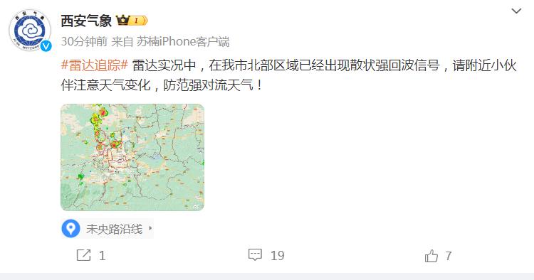 西安市北部已经出现强回波信号