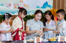 9月8日,在江苏省兴化市文林幼儿园,小朋友在老师的指导下学习做月饼。近日,多地举办传统民俗活动,迎接中秋佳节。近日,多地举办传统民俗活动,迎接中秋佳节。近日,多地举办传统民俗活动,迎接中秋佳节。