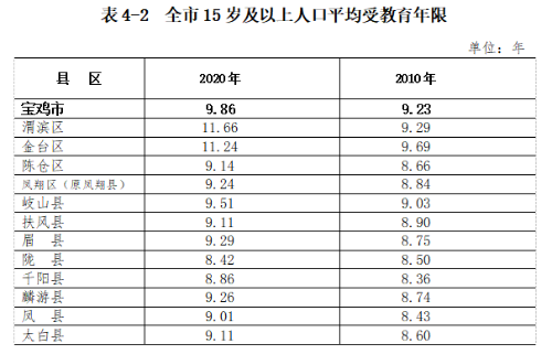 同2010年第六次全国人口普查相比,全市人口中,15岁及以上人口的平均受教育年限由9.23年上升至9.86年。