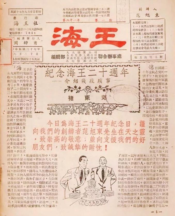 《海王》旬刊,是中国的第一份企业刊物,创刊号于1928年9月20日在天津出版。