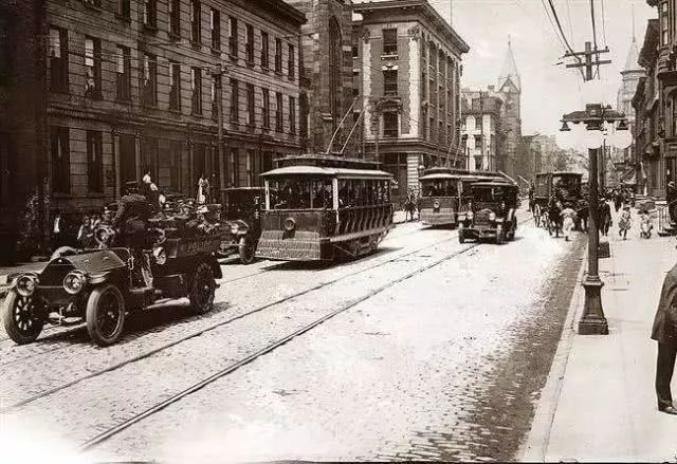 1906年,天津建成围城环行的有轨电车路线,不久后形成了白牌、黄牌、蓝牌、红牌、绿牌、花牌电车路线网络,天津也成为了中国最早建立公共交通系统的城市。