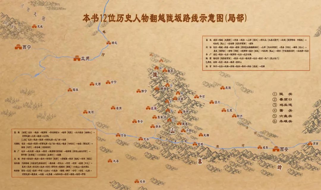 沿着丝绸之路从长安到西域,翻越陇山,较大的通道由南向北依次是渭河狭道、咸宜古道、陇关道、秦家源道、陇坻道主干道、番须道、鸡头道、瓦亭道、六盘道、木峡道、石门道。这些关道隘口,越是向北,越是平缓易行。
