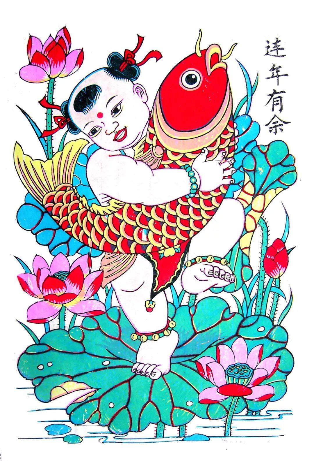 武强年画——连年有鱼。