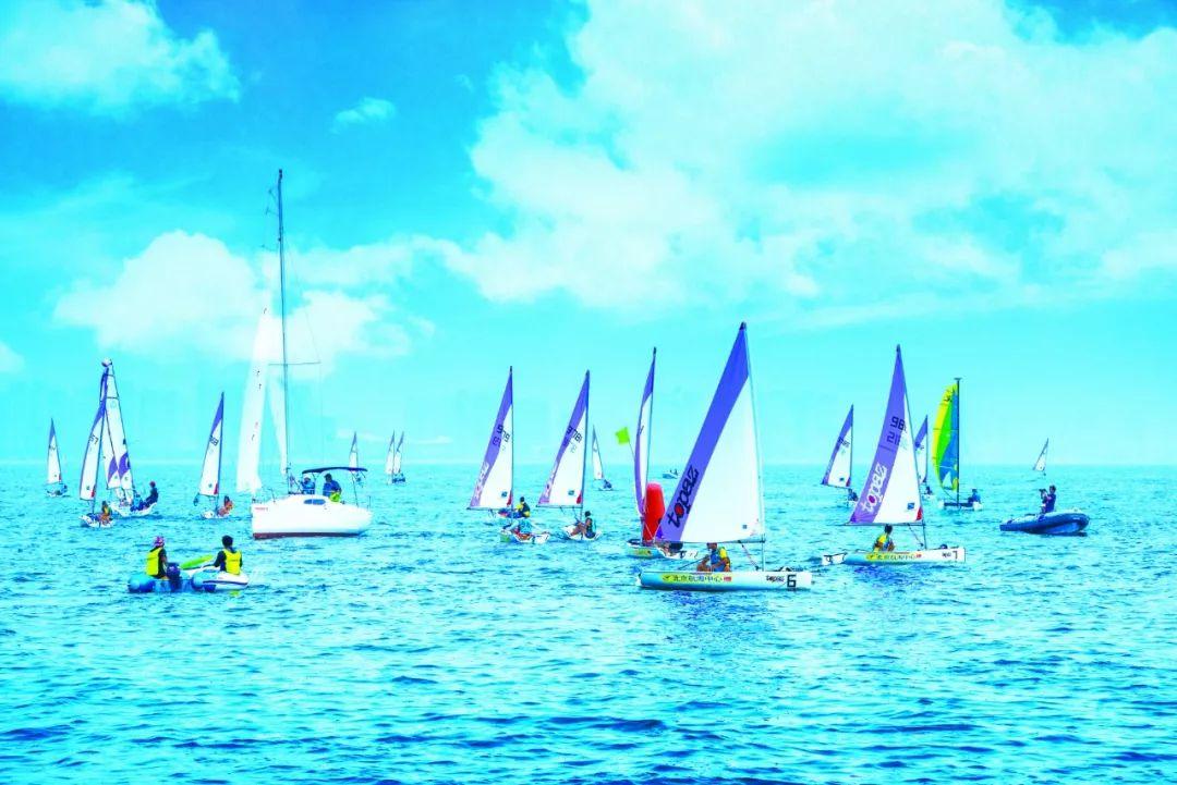 在秦皇岛海域举办的帆船比赛。