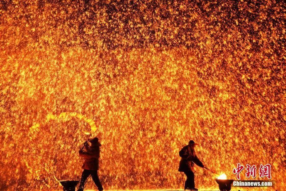 河北省非物质文化遗产“打树花”。陈晓东 摄
