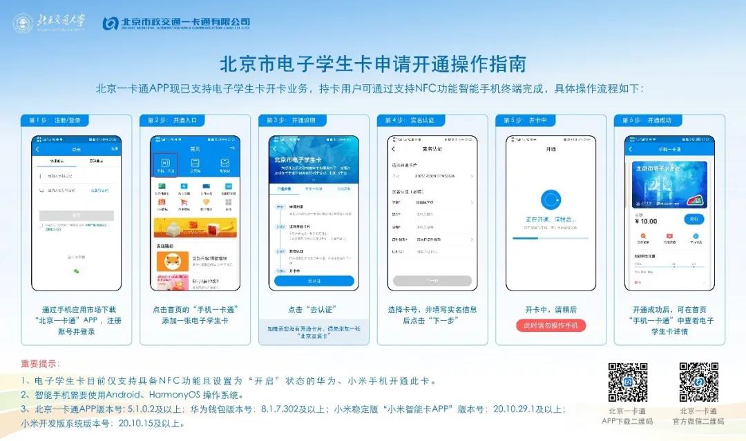免费申领:北京市电子学生卡免费为北京高校学生配发,华为、小米学生用户可通过 北京一卡通APP在线免费申请 北京市电子学生卡,具体方法参考下文。