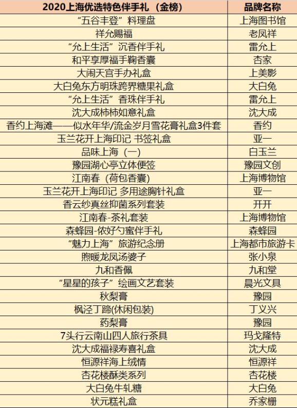 本次入选的30款2020上海优选特色伴手礼