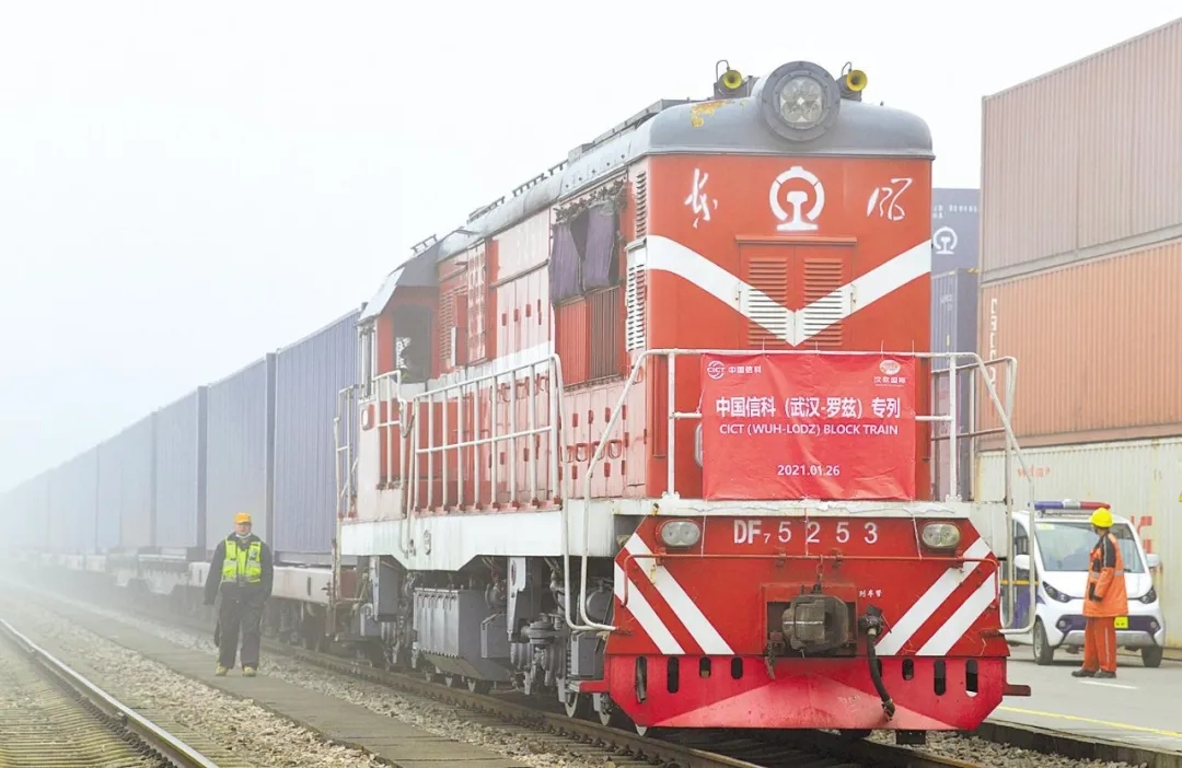 1月26日,满载通信产品的中欧班列从武汉开往波兰罗兹。(湖北日报全媒记者 倪娜 通讯员 王遥遥 摄)