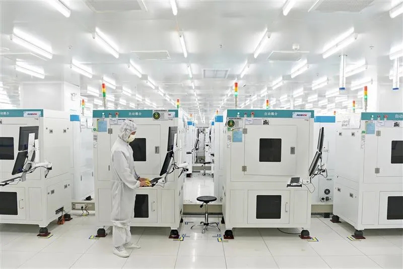 2月9日,武汉光迅科技股份有限公司,高端光电子生产线一派繁忙。(湖北日报全媒记者 李溪 摄)