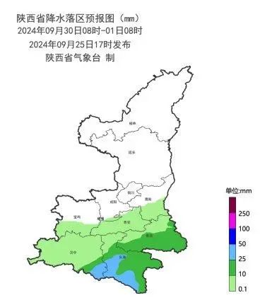 9月30日:陕北南部、关中大部、陕南西部有小雨(0-10mm),陕南东部有中到大雨(15-35mm),秦岭山区局地有雨夹雪。