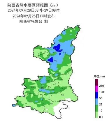 9月28日:全省大部分地方有小雨(0-10mm),陕北大部、关中中部、陕南西部局地有中到大雨(10-40mm),陕北中部局地、陕南西部局地有暴雨(50-70mm)。