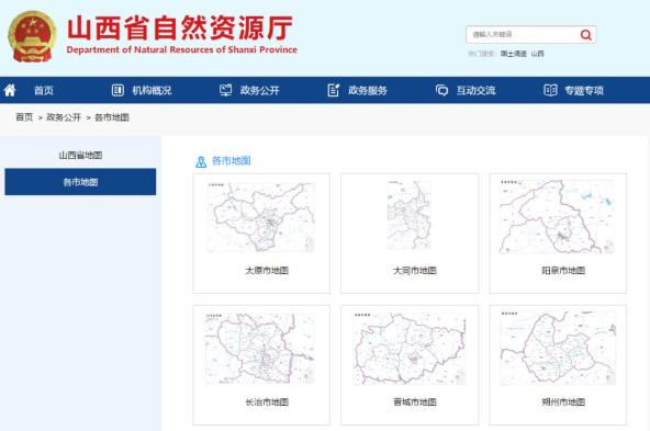 首先,登录“山西省自然资源厅官网”,在官网的首页查找“政务服务”——“标准地图”,点击进入页面就会显示“山西省地图、各市地图”字样;