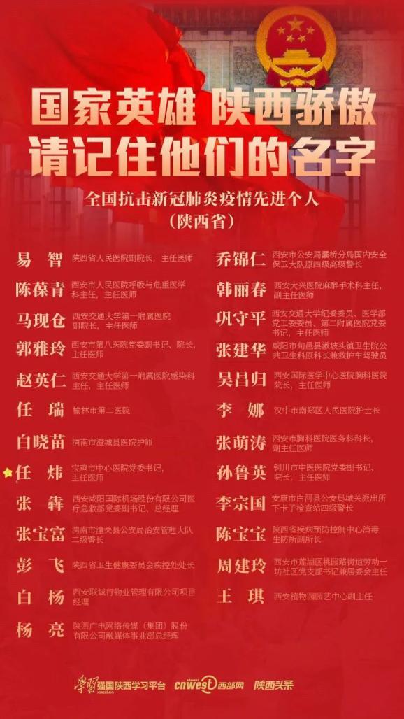 任炜,中共党员,中共宝鸡市第十二届委员会候补委员,宝鸡市中心医院党委书记。在防控新型冠状病毒感染肺炎的严峻斗争中,任炜同志始终坚持把全力确保人民群众生命安全和身体健康放在首位,为宝鸡地区疫情防控和救治工作做出积极贡献。