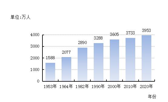 全省常住人口与2010年第六次全国人口普查的37327378人相比,十年共增加2201621人,增长5.90%,年平均增长率为0.57%。