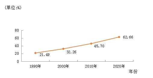 图6-1 第四、五、六、七次人口普查城镇人口比重