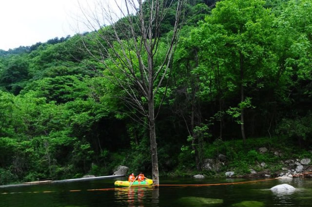 秦岭峡谷漂流也被当地人叫做广货街漂流,全程6公里,大落差150米,弯道19个,激流险滩10处,被誉为真正的“高山第一漂”。可以5-6人乘坐一艘橡皮艇在刺激中领略秦岭峡谷风光;也可情侣二人在橡皮小船的载乘下,携手未来,于山水国画融为一体;还可进行探险自驾漂。蒿沟绿水葱葱,山清水秀,自驾漂流艇由220米落差的河道飞流而下,时而穿林过桥,时而破滩越涧,体验在惊涛骇浪中搏击的愉悦。这里青山绿水,景色怡人,设有漂流、攀岩、射箭、水上滚筒、水上悠波球、水上拓展、篝火、表演等项目。 【 详细>>】