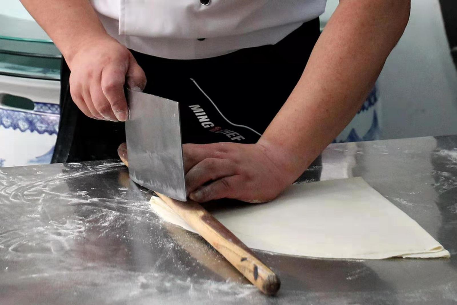 生面和好、揉团,蒙上湿布醒好后擀薄,以特有的“犁面”方法将面切细,沸水出锅有光泽,面劲道滑润。