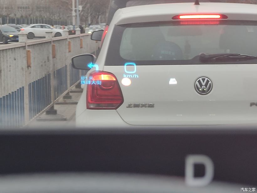 类似的车道信息更加丰富,包括红绿灯读秒信息,以及堵车需等待几轮红灯,以及距离公交车距离信息,车道指示显示等等,车速显示都一应俱全。