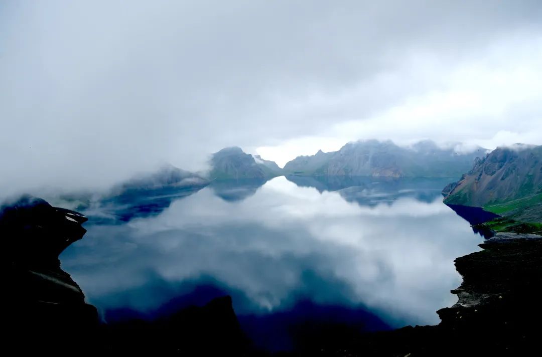 长白山常年白雪覆身、云雾缭绕