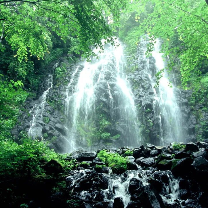 绿渊潭因池水碧绿深窘而得名。绿渊潭瀑布飞流直下,最高落差达26米,瀑水落于巨石而四渐,后流入深潭。