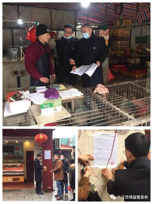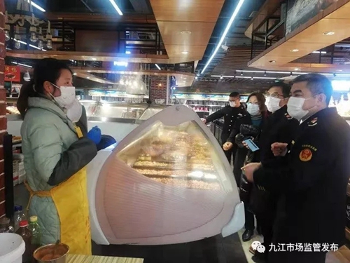 德安县市监局按要求迅速关闭了市场上所有活畜禽交易场所,严禁采取任何形式进行活畜禽交易。全员取消春节假期,全部回岗正常上班,走街串巷通知德安县所有经营中、晚餐的餐饮单位(包括乡镇农村)全部停止营业。疫情面前,没有防护服,只有口罩,每一个市监人用逆行而上的勇气守护百姓健康。