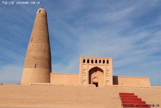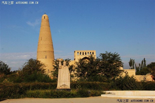 2014年8月21日清早,车队便出发赶往苏公塔。苏公塔位于新疆吐鲁番市东郊2公里处的葡萄乡木纳尔村,是一座造型新颖别致的塔形伊斯兰教建筑。苏公塔是新疆境内现存最大的古塔,建成于公元1778年,迄今已有230 多年的历史,它是清朝时期维吾尔族著名爱国人士吐鲁番郡王额敏和卓为了恭报清王朝的恩遇,表达自己对真主的虔诚,并使自己一生的业绩流芳后世,而自出白银7000两建造。苏公塔又名额敏塔,之所以称作苏公塔,完全是因为该塔由额敏郡主的儿子苏莱曼建造完成,故得名于此。