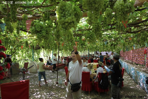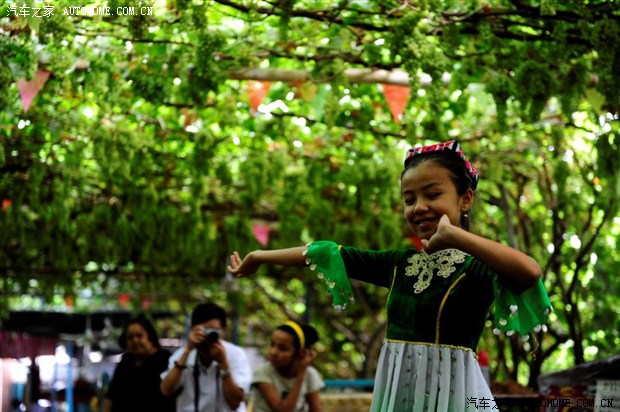 经过19日一天的游览与奔波,车队于20日上午来到吐鲁番葡萄沟民俗村并停留一天,恰逢当地举办第二十三届葡萄节,队员们忘记了昨日的辛苦奔波,积极地参与进来。