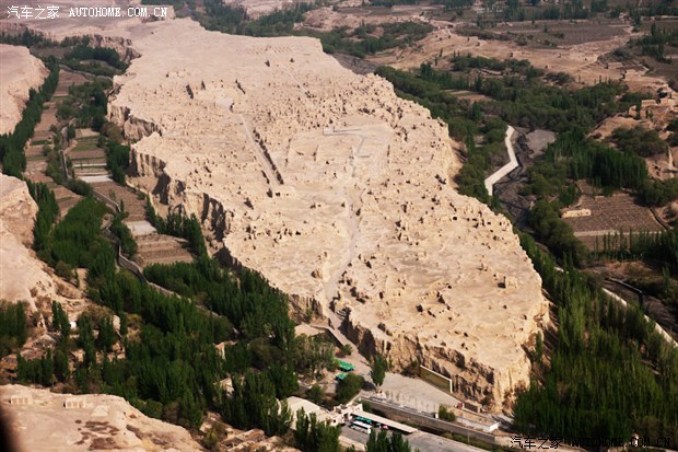 交河故城位于吐鲁番市以西13公里的一座岛形台地上,距离苏公塔约12公里。因河水分流绕城下,故称交河。