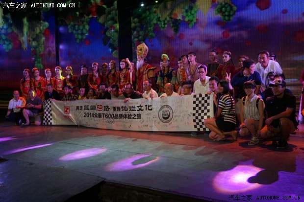 众泰T600车队在提前结束白天活动后,夜晚时分于“吐鲁番盛典大剧院”欣赏了音乐舞剧《吐鲁番盛典》表演。《吐鲁番盛典》是新疆最具代表性的音乐舞剧之一,诗化般的剧情,融合了典型的吐鲁番风情与维吾尔族音乐、舞蹈精华,包含吐鲁番的千年历史、神话、传说与爱情,展现了古代吐鲁番最为神秘、唯美的印象。
