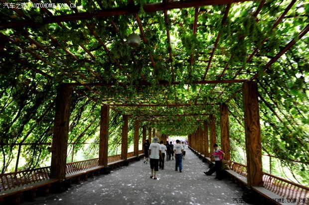 幽深的长廊,结满密密麻麻葡萄的藤架,形成两座宽阔的天然凉棚。四周都是葡萄,一串串、绿莹莹、圆溜溜,诱人极了。凝望的时候,仰头的时候,环顾的时候,只有葡萄充满了整个世界。甚至低下头来,地上也印满了葡萄的影子。