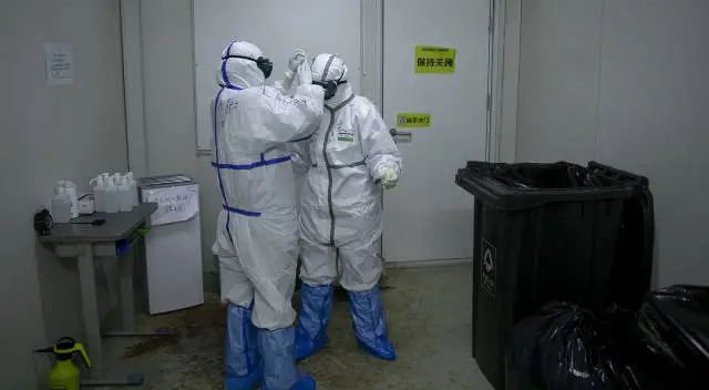 刘家怡指导离开方舱的人脱防护服