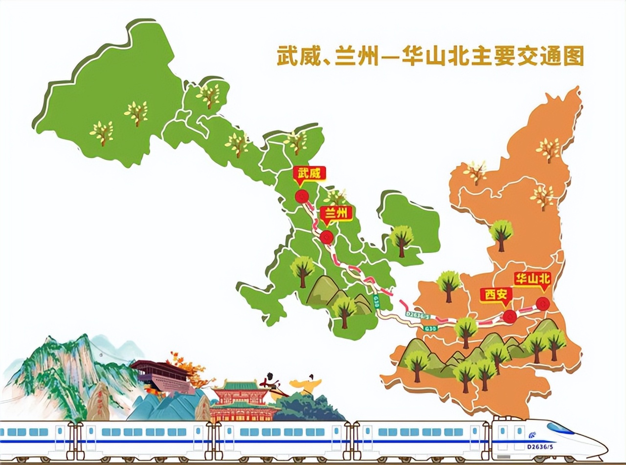 兰州位于黄河上游,自古就是“联络四域、襟带万里”的交通枢纽;渭南位于黄河中游,素有“三秦要道、八省通衢”之称,两地同为黄河沿岸和古丝绸之路的重要节点城市。今年9月6日,随着D2635次列车从华山北站缓缓驶出,一路向西开往武威东站,华山与甘肃河西走廊之间实现了景城直达,陕西与甘肃两地旅游市场更是站上了互联互通的新起点。