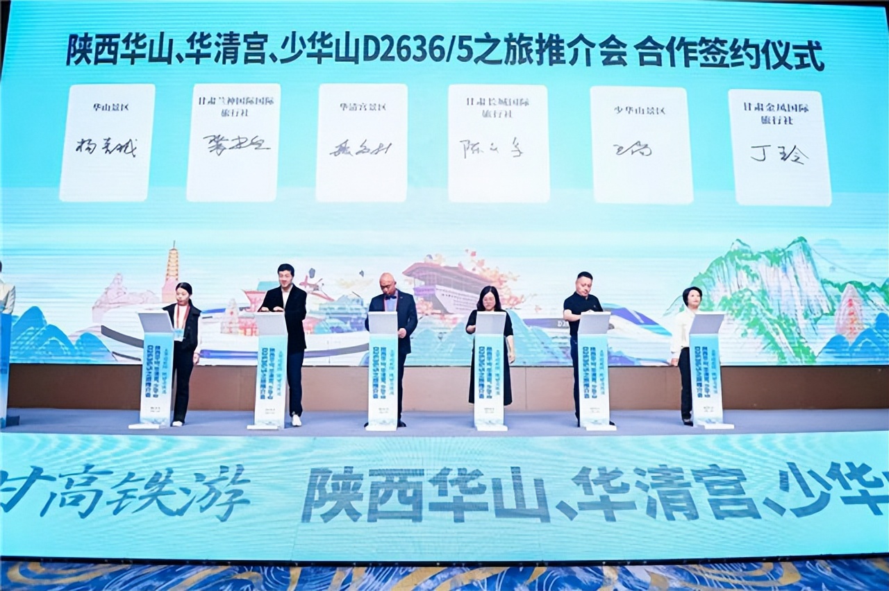 一条万年流淌的母亲河、一条千年传颂的丝绸之路、一条百年穿梭的陇海铁路和一条长达万里的连霍高速,将陕西渭南和甘肃兰州紧密联系起来。而随着D2635次列车从华山北站一路开往武威东站,陕甘两地旅游市场站上了互联互通的新起点。10月15日,由渭南市文化和旅游局、陕西省旅游集团有限公司指导,华山风景名胜区管理委员会、陕西华山旅游集团有限公司、陕西太华旅游索道公路有限公司、陕西华山三特索道有限公司、陕西华清宫文化旅游有限公司、少华山景区管理委员会、少华山文化旅游有限公司、西北旅游协作区秘书处主办的“三华耀丝路 陕甘高铁游”陕西华山、华清宫、少华山D2636/5之旅推介会在甘肃兰州举行。陕西华山、华清宫、少华山三大景区携手为甘肃旅游市场送上金秋旅游大礼,邀请甘肃游客赴陕西登西岳华山、观舞剧《长恨歌》、赏少华山红叶。