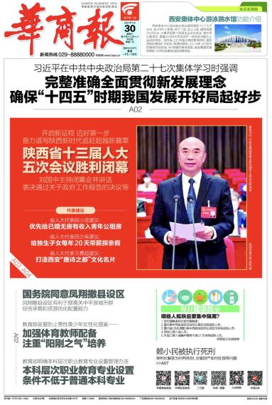 ▲1月29日下午,陕西省第十三届人民代表大会第五次会议圆满完成各项议程,在西安胜利闭幕。主席团常务主席刘国中、胡衡华、刘小燕、姜锋、朱静芝、郭青、梁宏贤、戴征社、郭大为、韩水岐担任本次大会执行主席并在主席台前排就座,刘国中主持大会。(详细→)